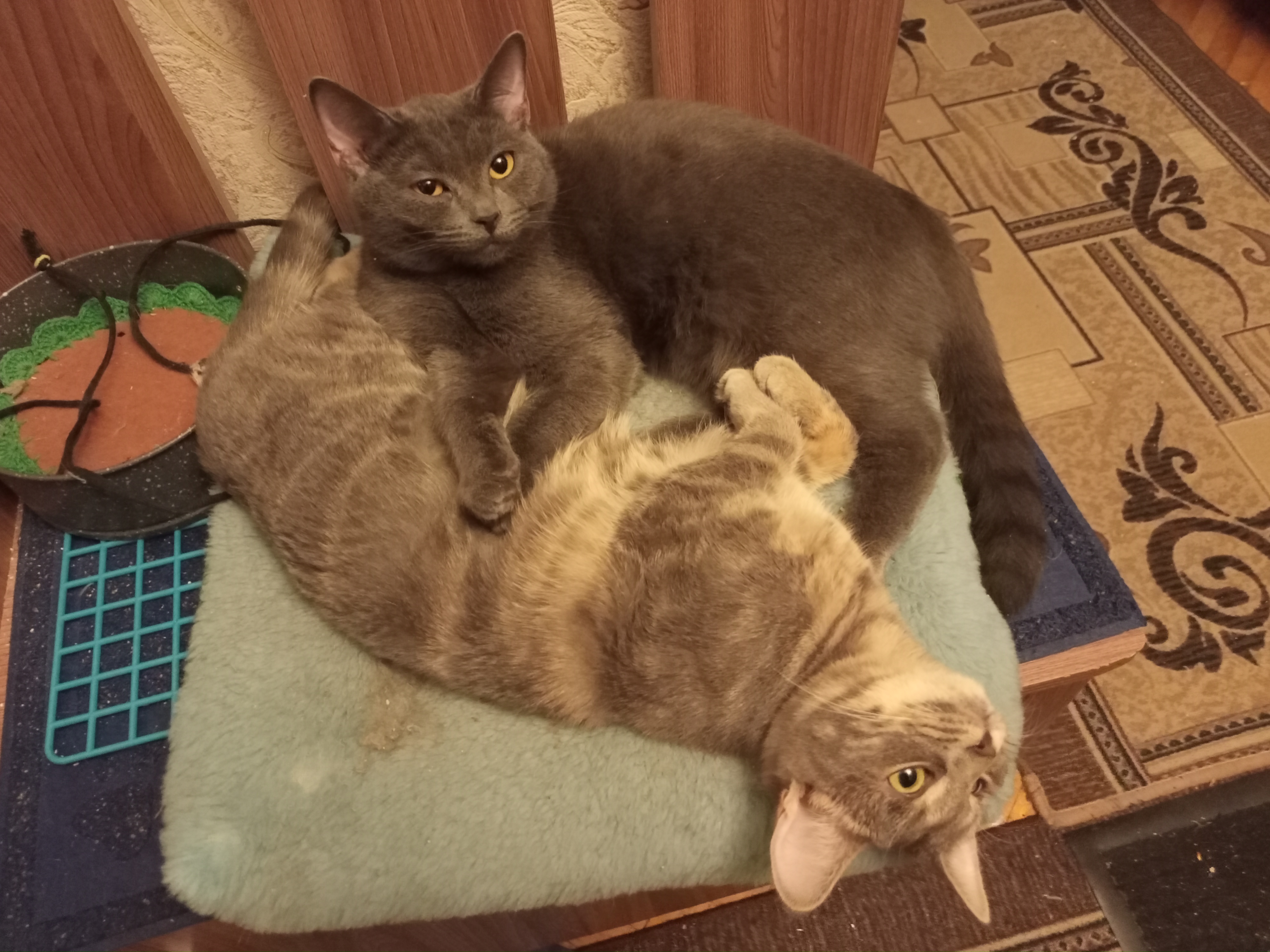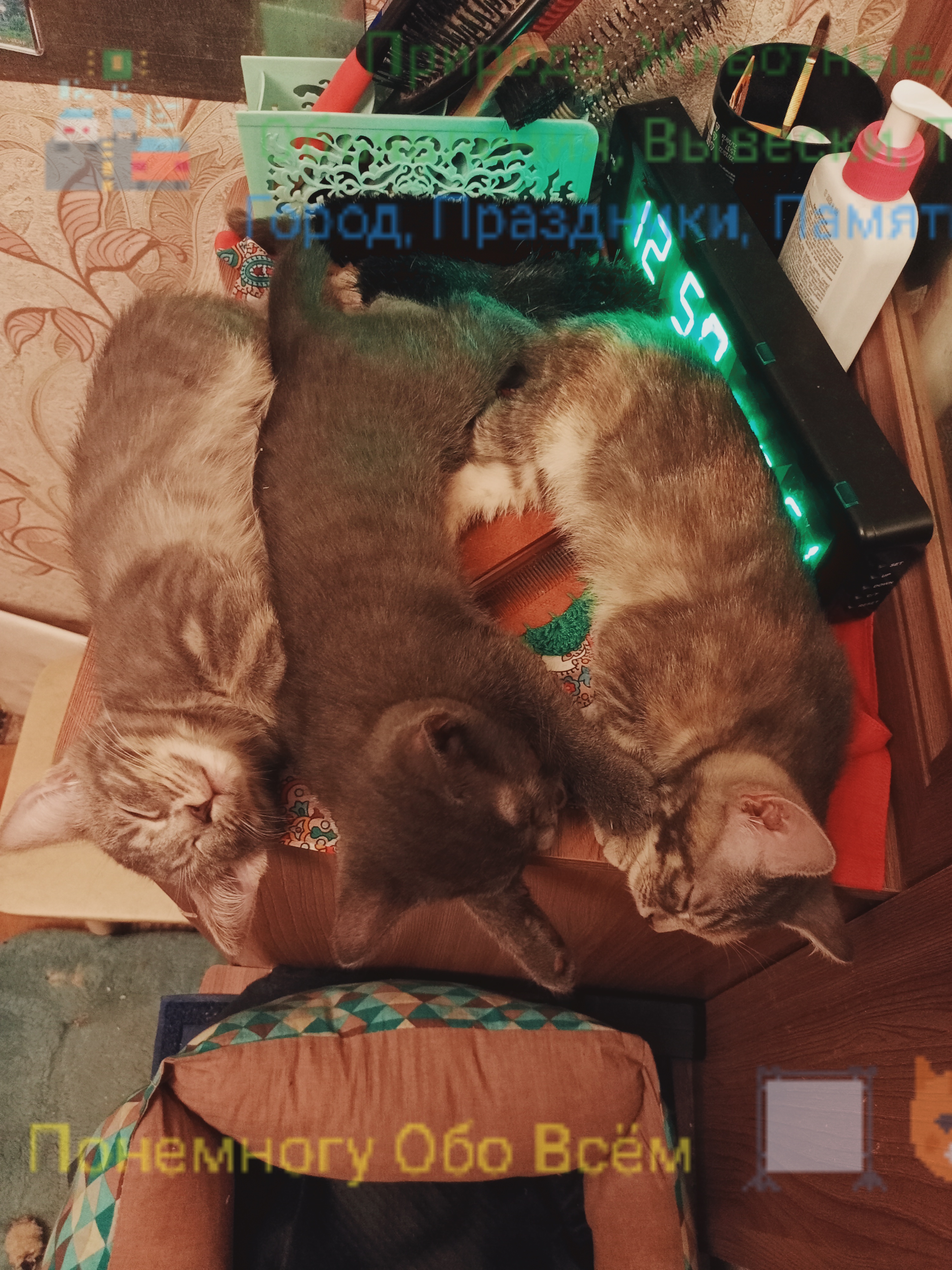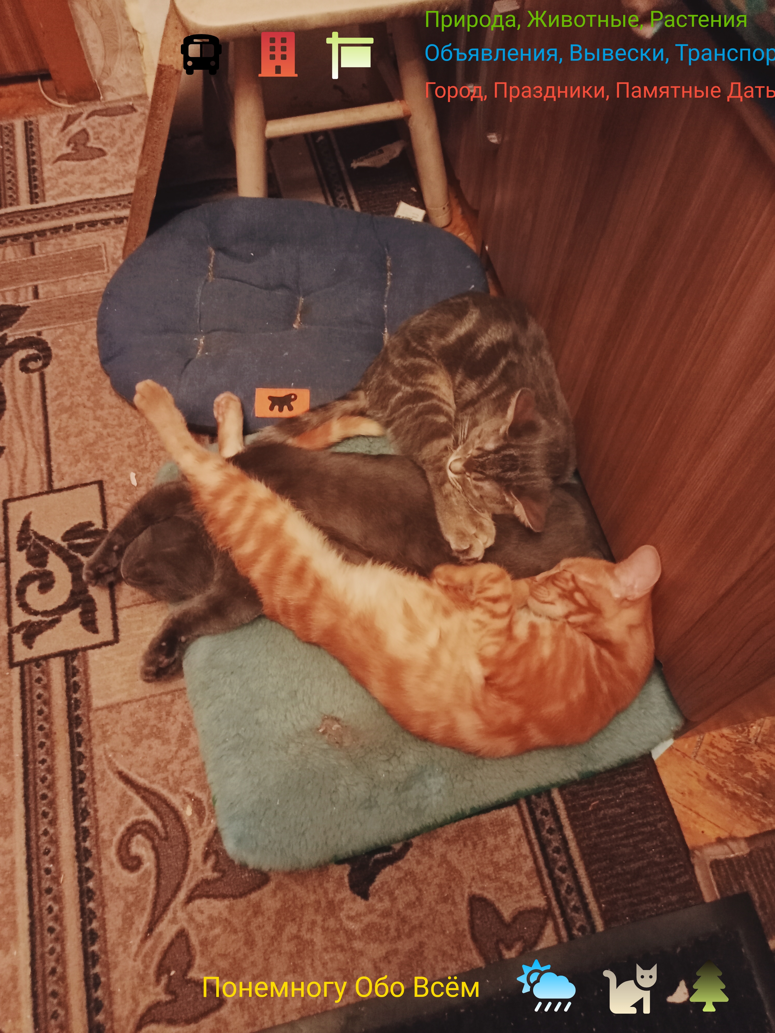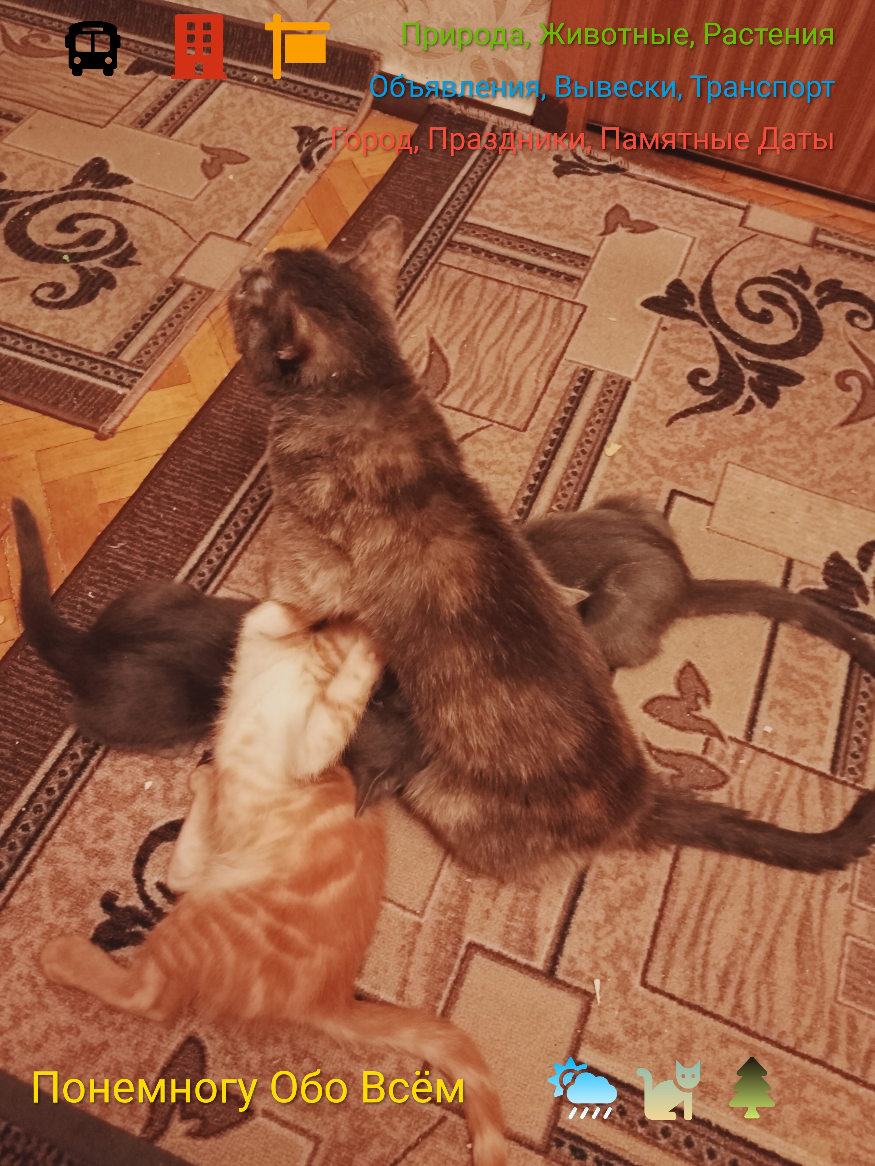 Наша кошка Дымка несколько месяцев назад родила котят разных окрасов. Они уже подросли, игривы и подвижны --- пушистые друзья встречают после работы, нежно целуют и ласкаются, а на руках включают "моторчик" и нежно убаюкивают своим урча ...