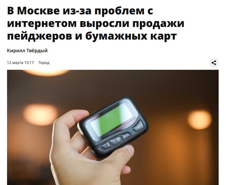 Москвичи скупают бумажные карты и пейджеры — на фоне отключений интернета.