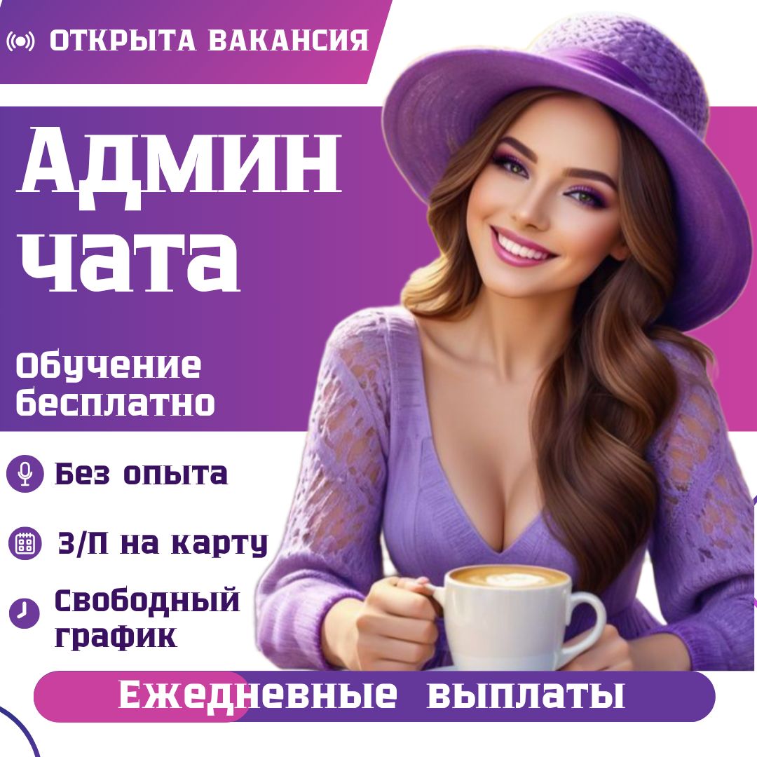 Вакансия!!! Срочно требуется админ чата в крупную российскую компанию. Можно без опыта, от 2-4 часов свободного времени, предоставляем обучение и сразу приступаем к работе, официальный доход.