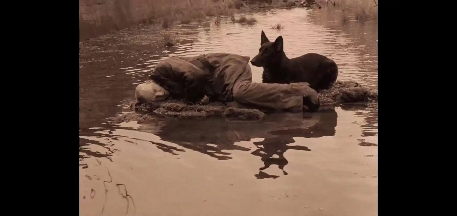 Живёт вместе с нашими бойцами прямо здесь, на фронте. Добрая, милая.